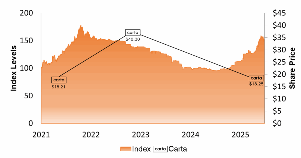 That’s not a minor slide. The Prime Unicorn Index 30 tracks the 30 most valuable private U.S. companies and falling out of that top tier signals a significant shift in perceived value and investor confidence. Carta’s estimated valuation has reportedly fallen from roughly $7.3 billion in 2022 to around $3.3 billion after the controversy, a steep decline for a company once viewed as a future IPO candidate.
